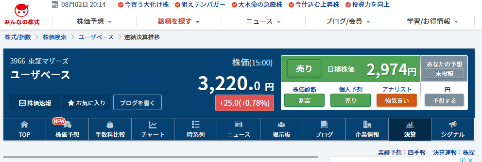 1年後のユーザベースの株価は、きっと今の水準よりは高くなっているはずです。もし含み損抱えている方がいても、焦らずにホールドで良いのではないかと思います。