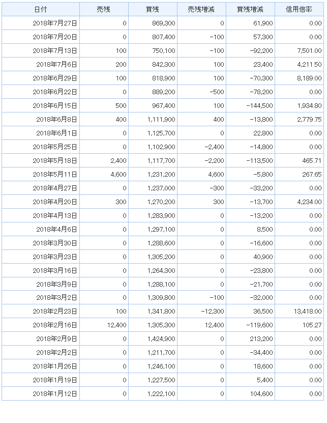 通常、利益が出ると信用で買っている筋は長期間保有することなく売却していくわけですが、株価が上昇し続けていた銘柄だったため、6月8日週まで信用買残が100万株を超える水準で推移しました。この間は信用買いホルダーがどんどん入れ替わっていった状態だと思います。