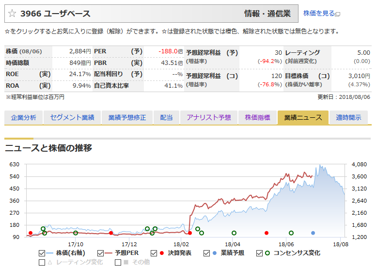 ユーザベースの決算発表ですが、そろそろですね。おそらくは8月10日(金)頃だと思います。