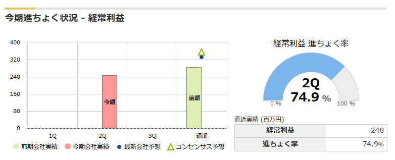 経常利益 第二四半期で74.9%達成中ですので進捗も良いですし、
