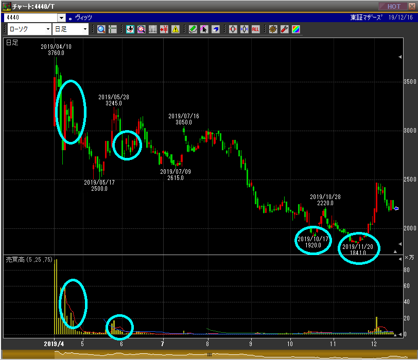 要するに、IPO開始直後くらいに信用で買った人は、その後、株価は自分の買った水準よりも低かったため、含み損でずっとホールドしていたのでしょうけど、そのまま期日が来て、反対売買を強いられてるわけですね。