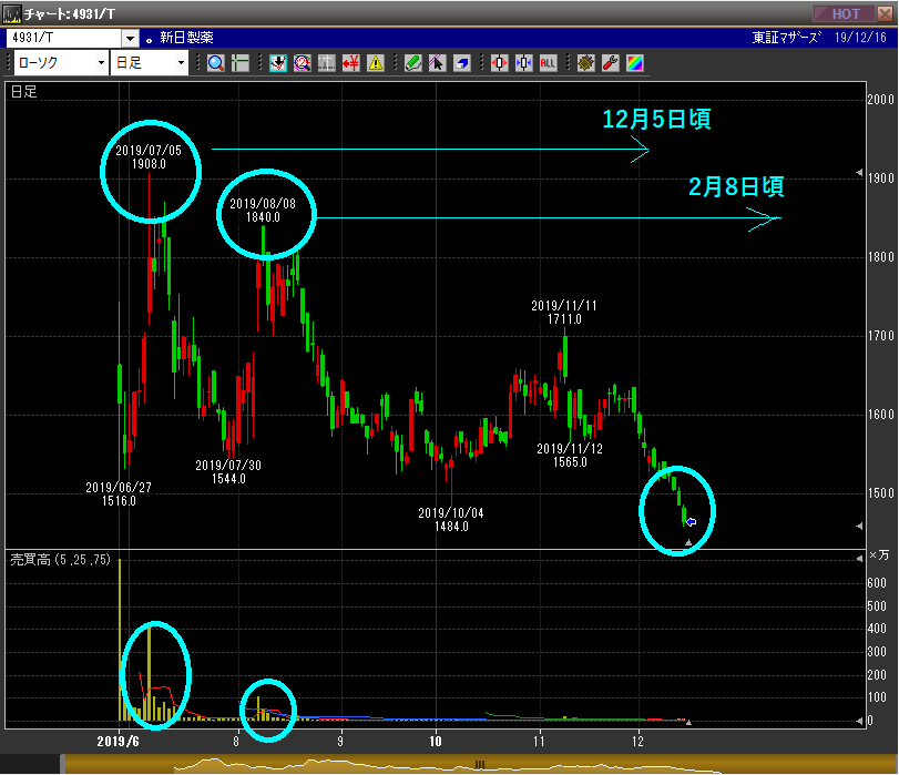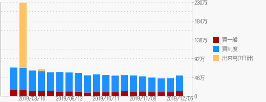 このチャートを見れば分かりますが、山が2つあるので、この期日到来(信用買いしてから6か月後)の売りピーク1回目は12月5日頃、2回目はおそらく2020年2月初旬頃になります。