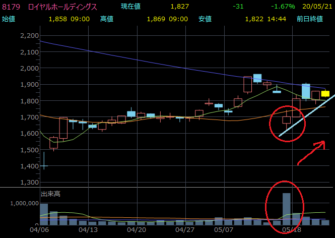 それから直近では、ロイヤルホールディングスがダメダメな決算でしたが、あの動きが今回とても参考になると思います。