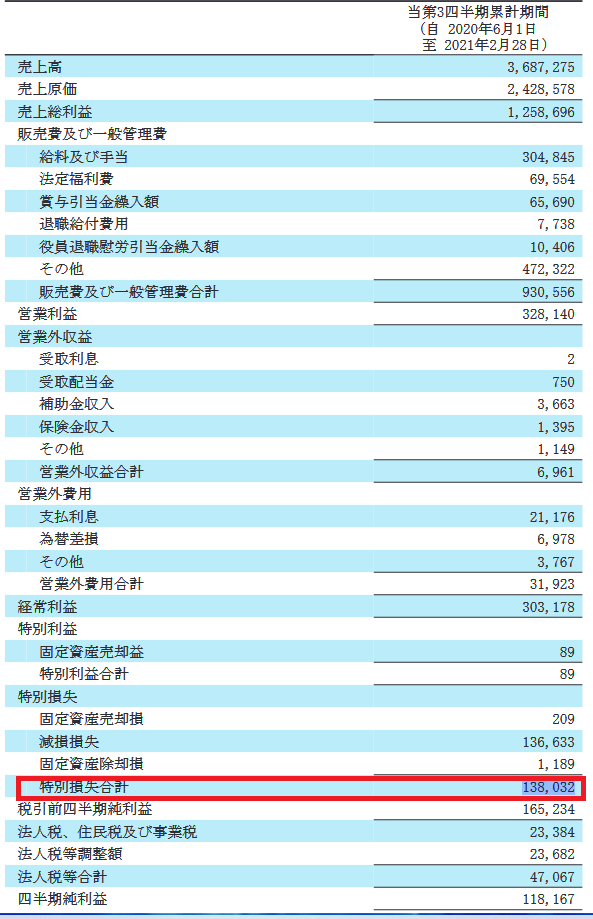 私の見解ですけど、もし特損が発生しなかった場合、どんな決算だったのか?を考える必要があると思います。