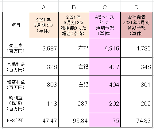 (今までが連結で、2021年5月期が単体なのには、ご注意ください)