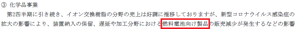 医療、半導体・太陽光(→ 水処理関連)に加えて、燃料電池関連でもあるわけですからテーマ性ありますよね(笑) → 燃料電池については調べないと!