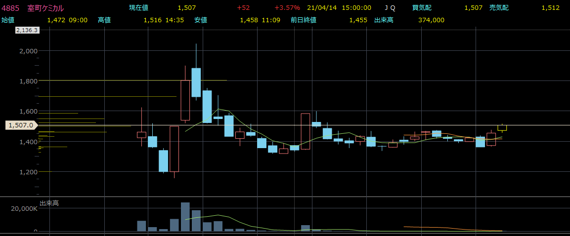 そして室町ケミカルのチャートをじーっと見た時に、今回の決算を見て売り込まれて、1200円割り込むって思いますか?