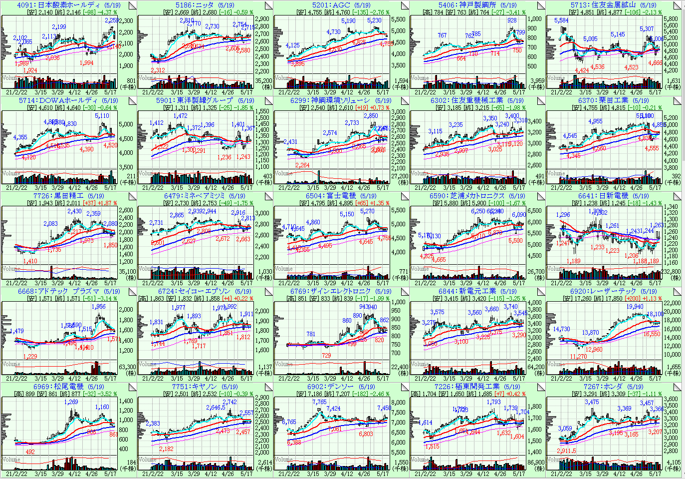 ・DOWA:ボックス圏と考えれば、今は底値付近。4400-4500円で買えれば、反発狙いができそうかも。機関無し!