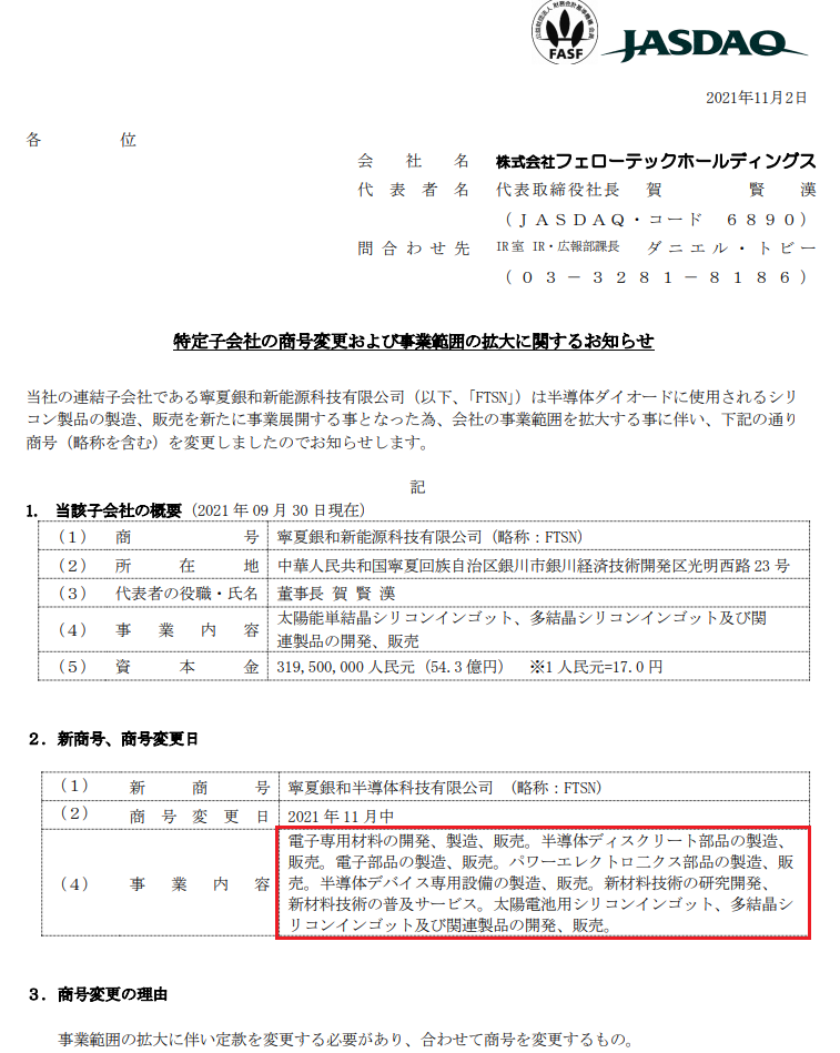 中国の100%子会社ですが、半導体に経営資源を集中していくことが伺えます。