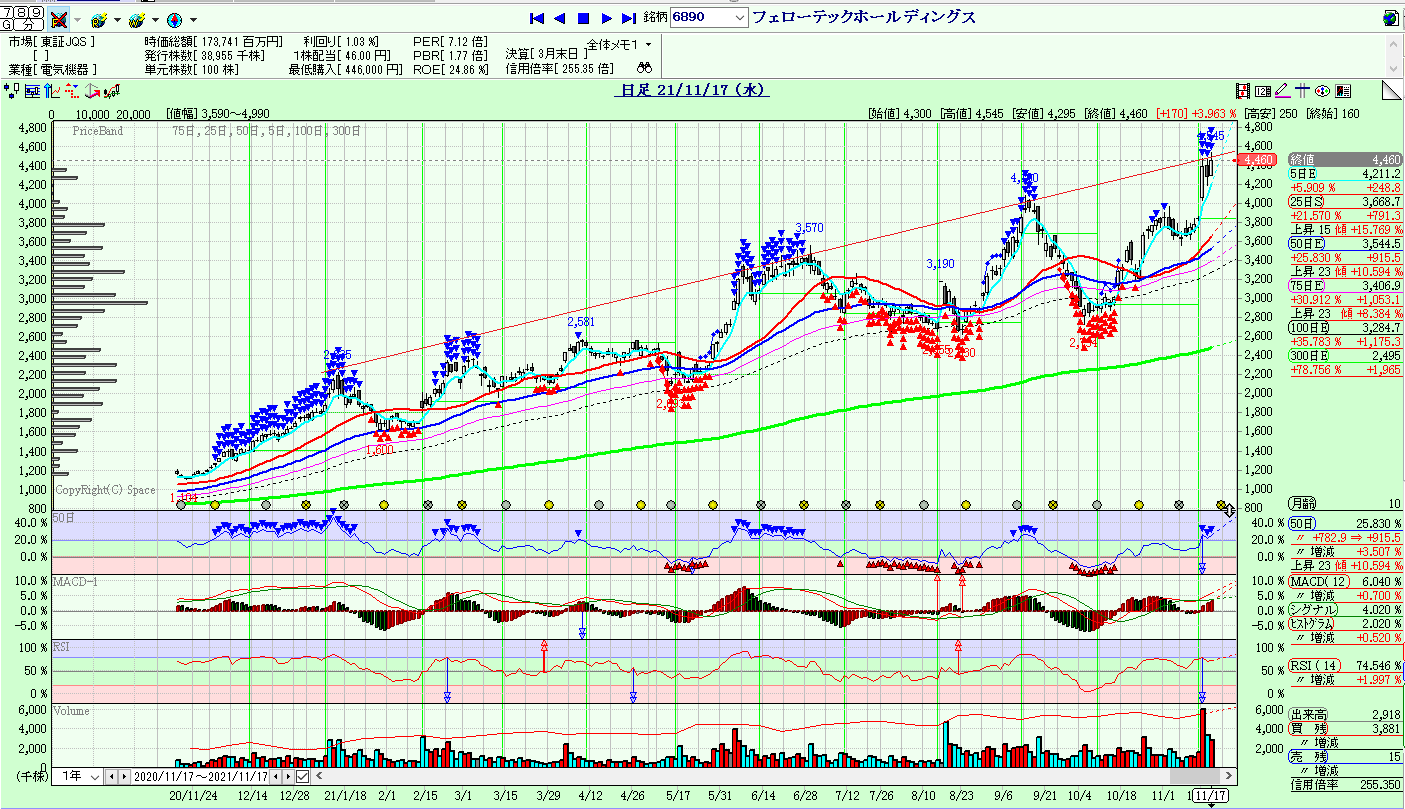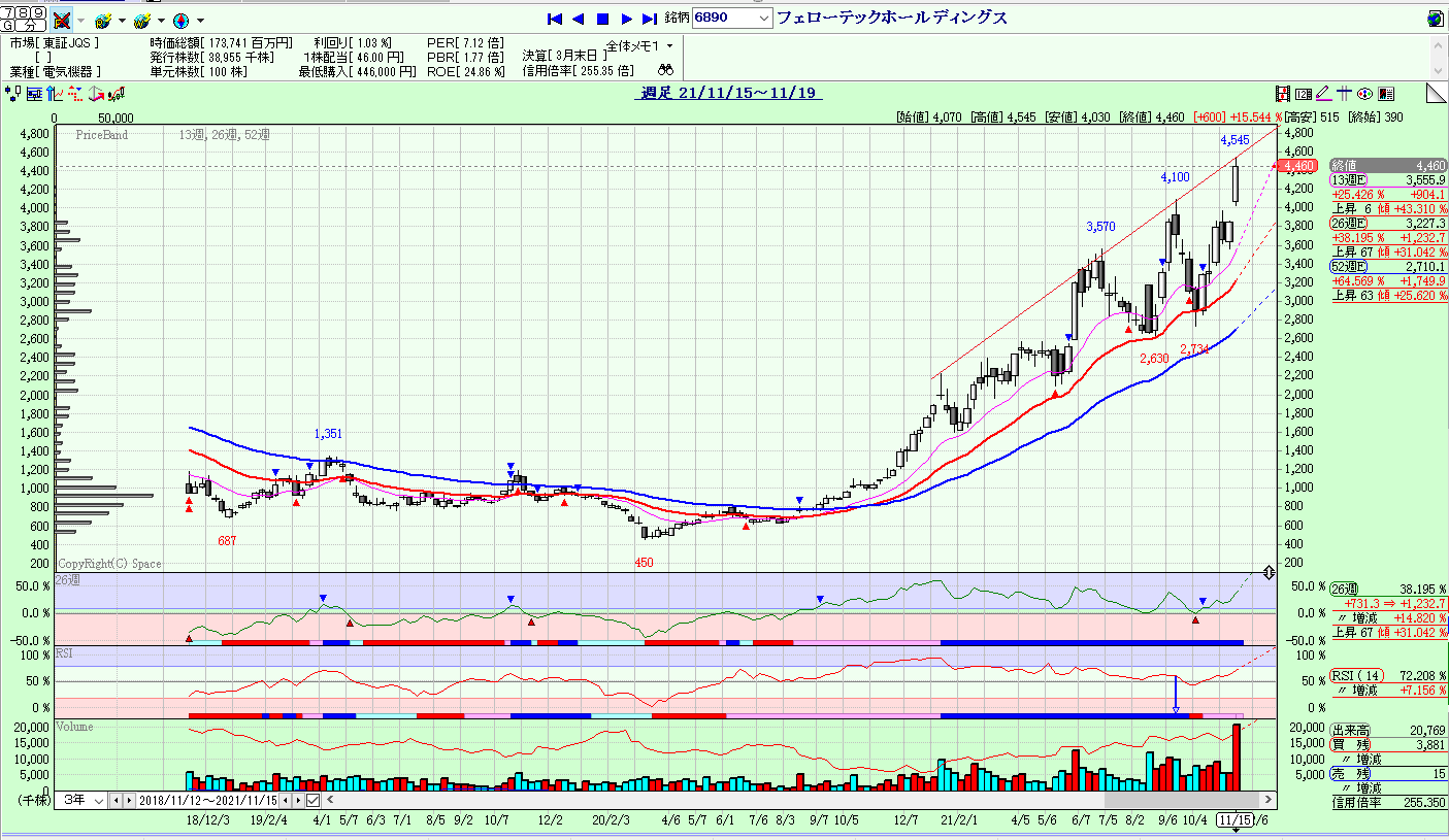 ご質問の件ですが、フェローテックの決算内容とか将来見込みは、充分ご存じだと思いますので割愛して、単に需給とテクニカルだけを俯瞰したいと思います。