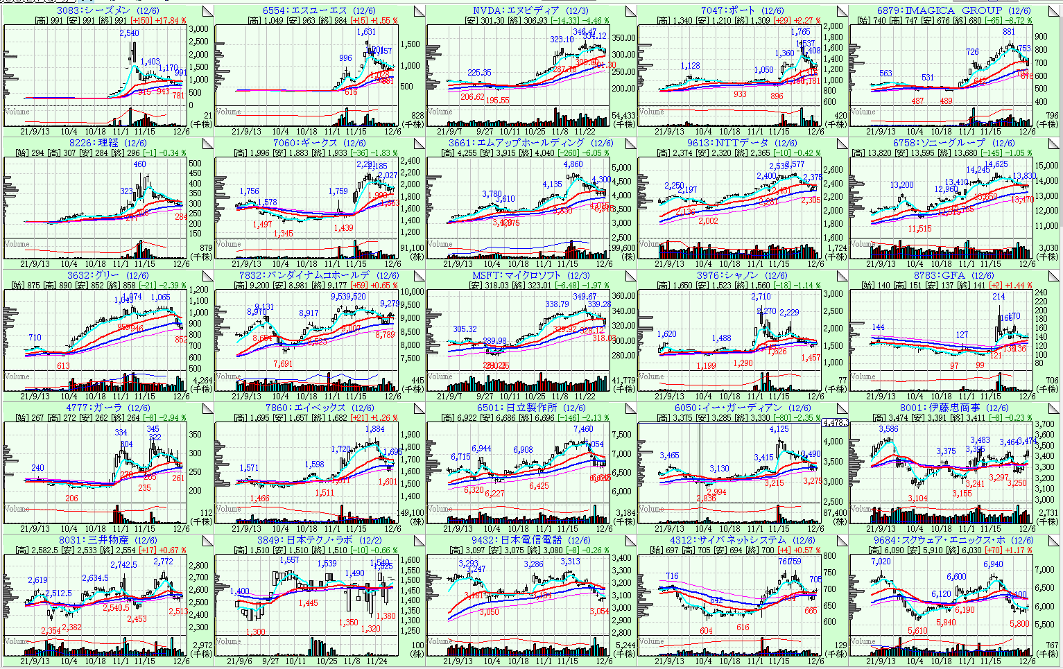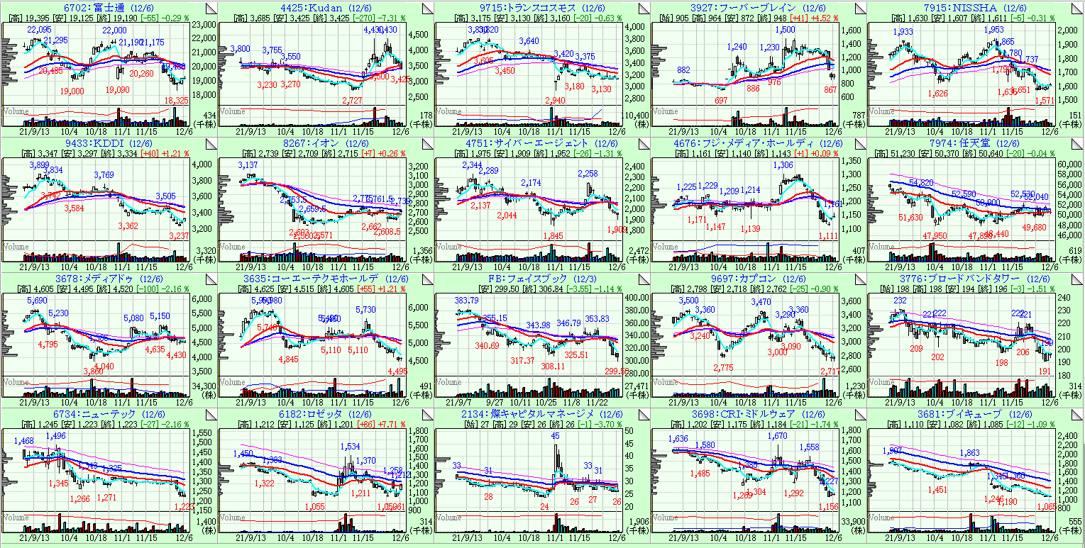 左上から、26週移動平均線の傾き順にソートしています。