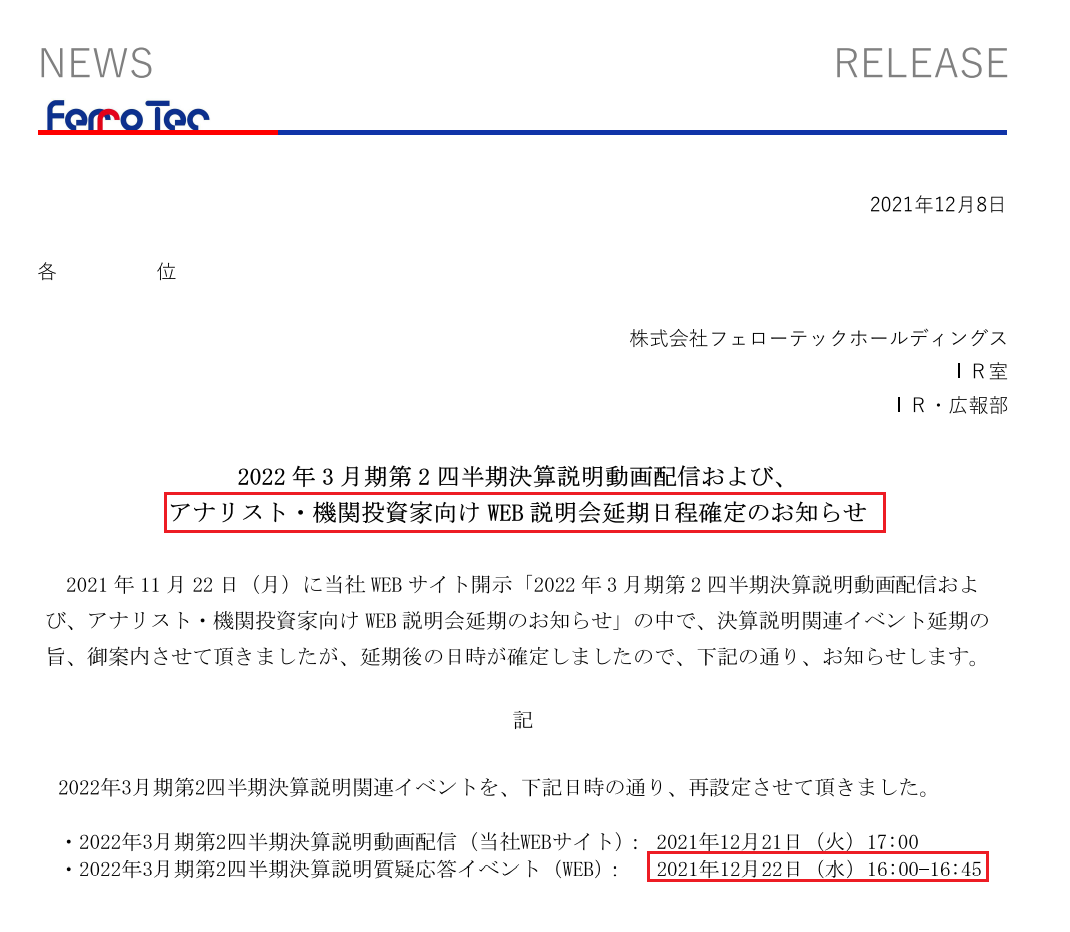 12月22日の夕方16時から、アナリストや機関投資家向けの質疑応答イベントがあります。