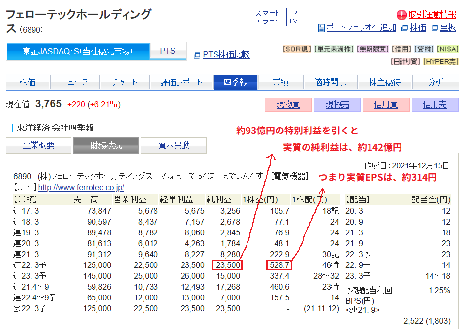 新しく四季報が出ましたが、その中でフェローテックの今後の見込みの数字を見たときに、驚いた方もいると思います!