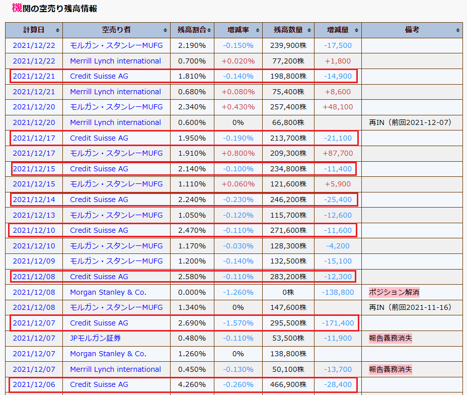 Credit Suisse AGは、最近、ずっと空売り玉を減らしています。