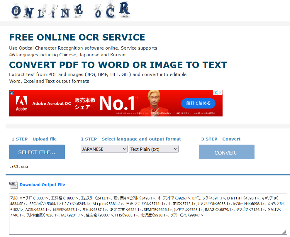 無料でOCR変換してくれるところは、玉石混合、サイトによって変換精度が異なります。