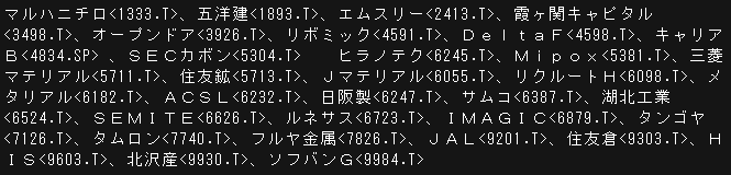 0126.T〉、タムロン074ロ.T〉、フルヤ金属0日26.T〉、..JALく92ロ1.T〉、住友く93ロ3.T〉、H
