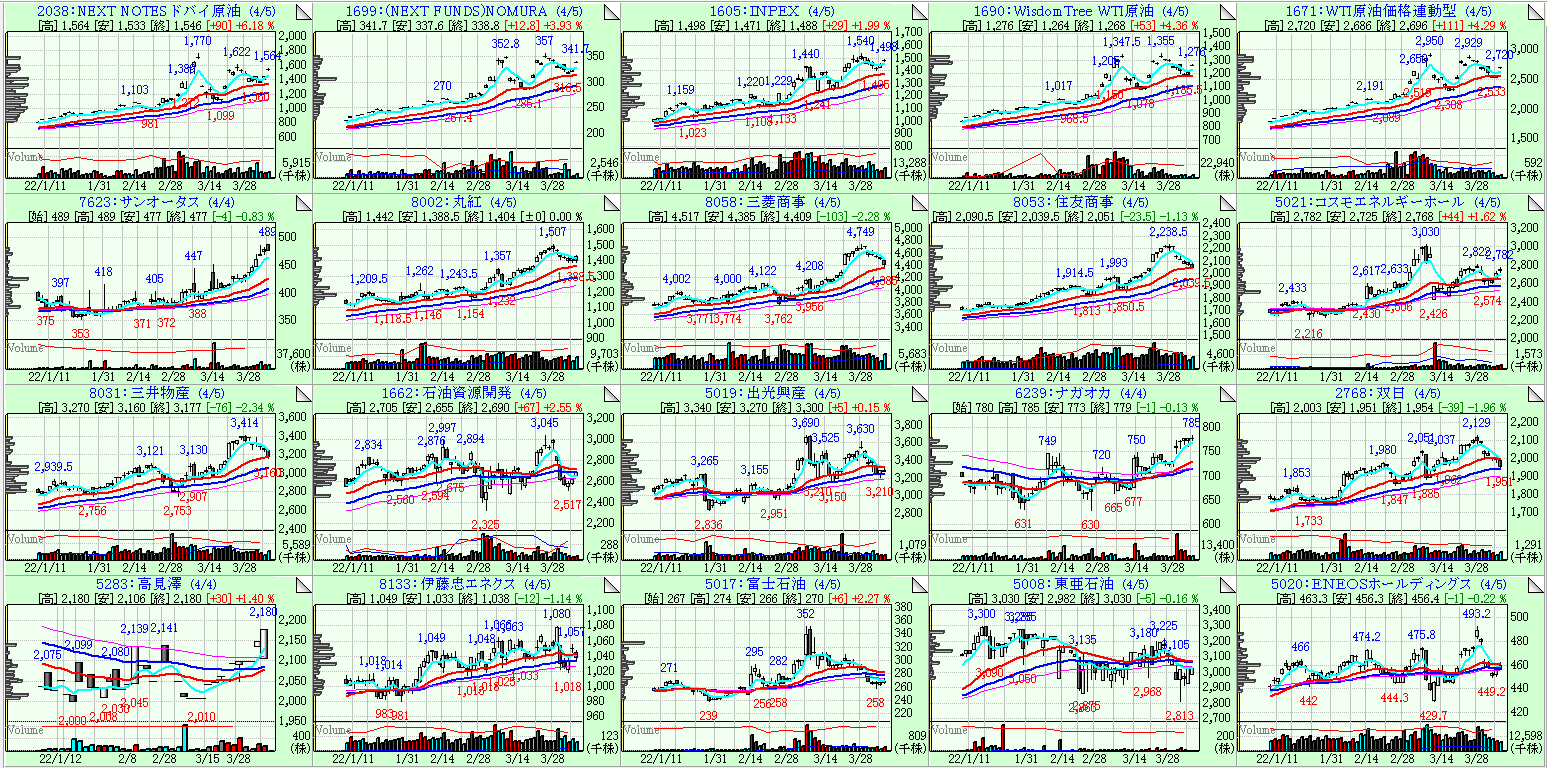 石油関連は、またこれから強くなると思いますので、今後、また上昇しそうな銘柄をピックアップしてみました。