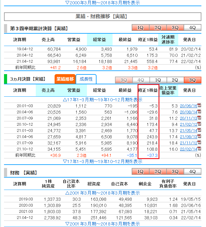 四半期ベースのEPS(1株当たり利益)が伸びているかをチェック!