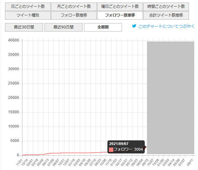 1年前のTwitterフォロワーさんの数は、〇〇でした