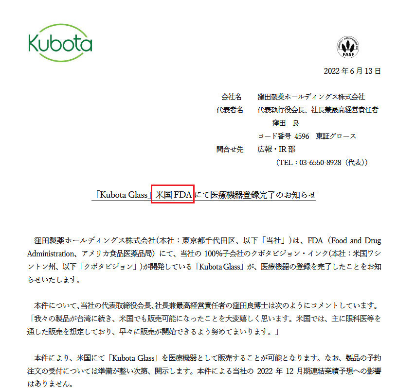 FDAでお墨付きが得られると、大きなマーケットである米国での販売が認められますし、米国で販売できれば、世界中で販売できる可能性が高まるからです。