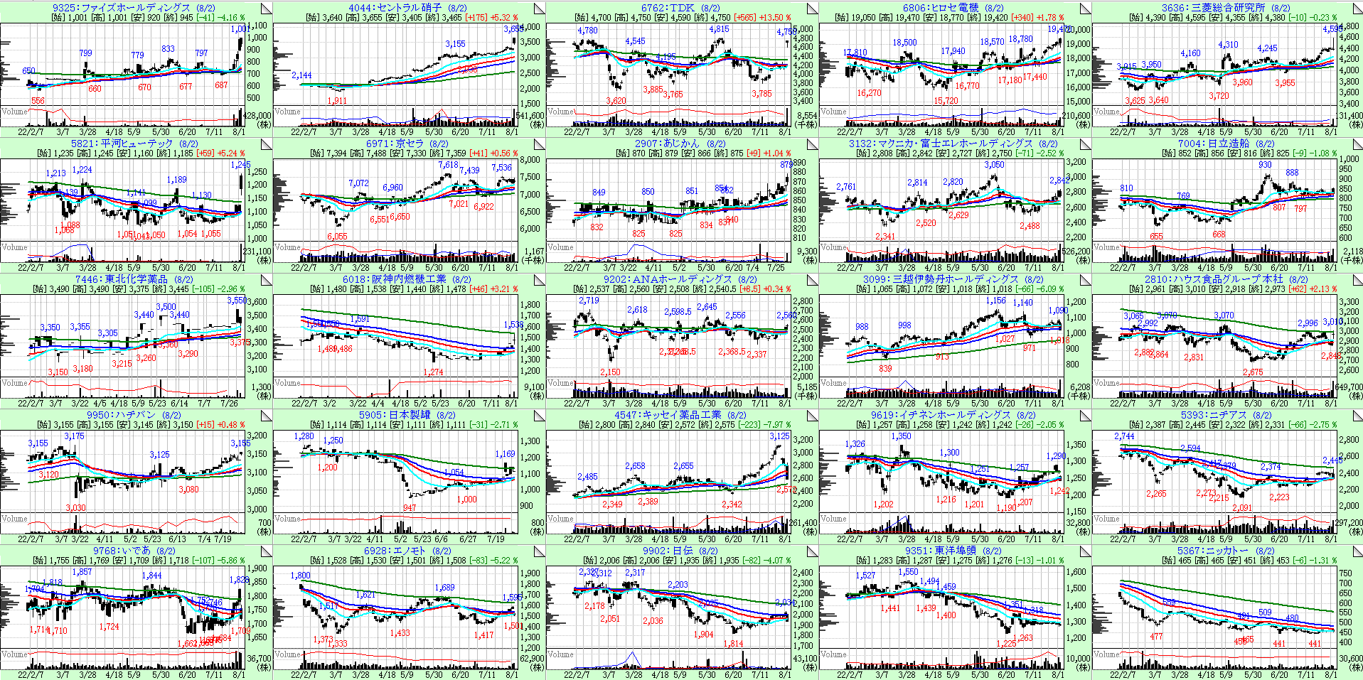 今回は26週線の傾きが大きい順に左上からソートしています。