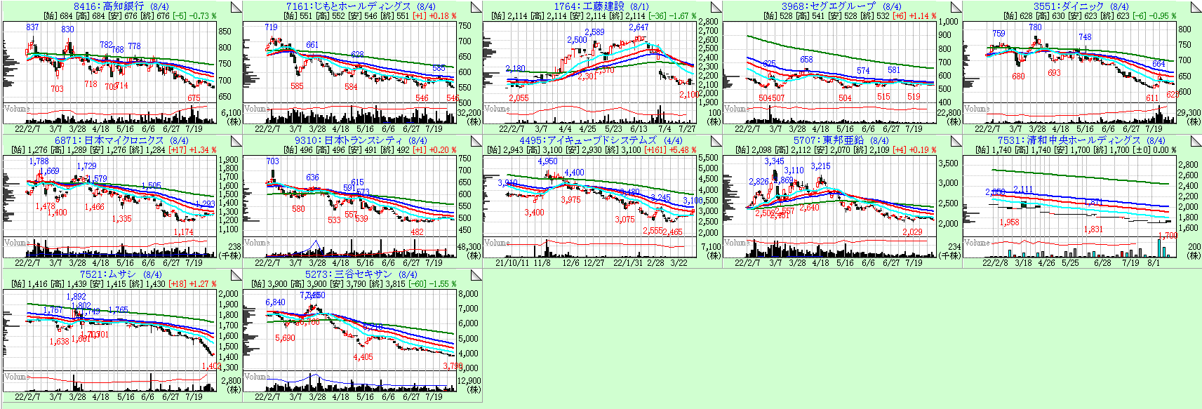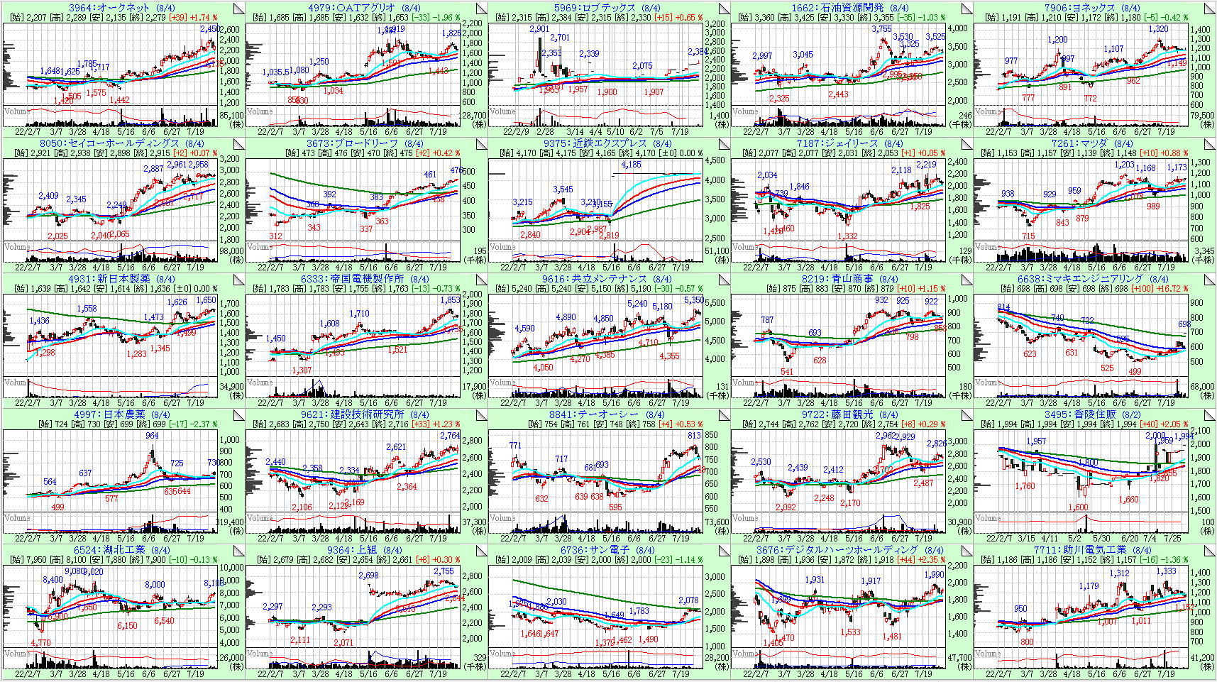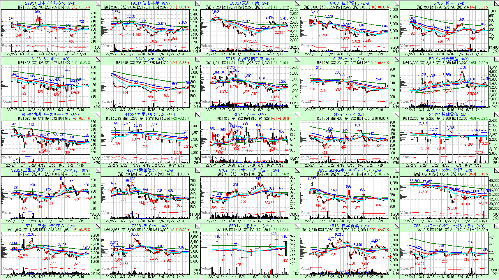 今回は26週線の傾きが大きい順に左上からソートしています。