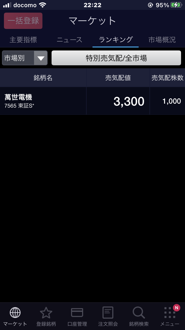 ・気配値の株数(どのくらいの注文が殺到しているのか確認できる)