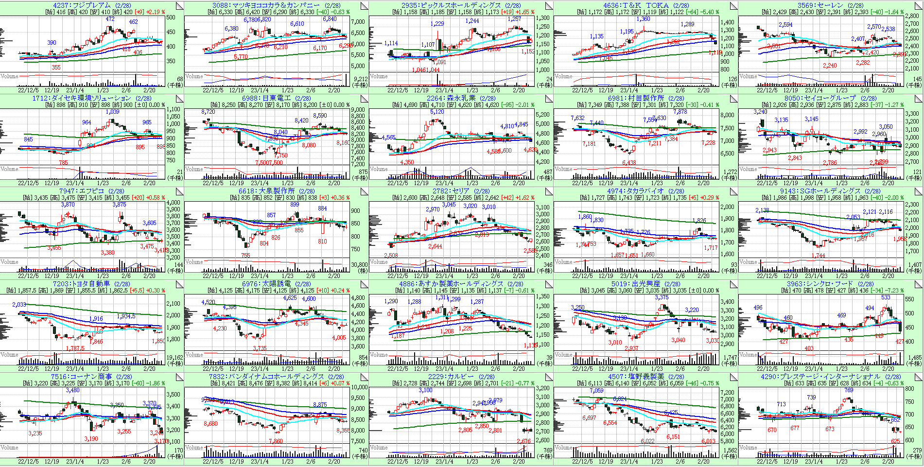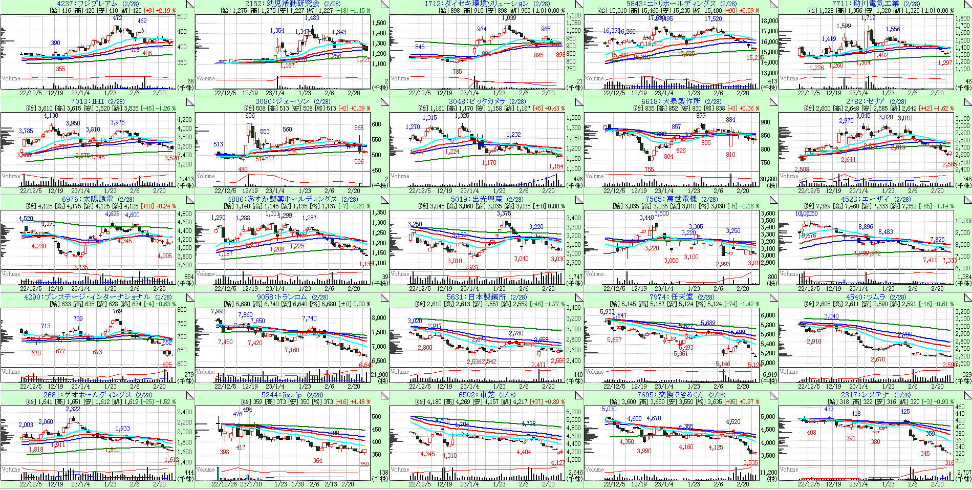 今回も26週線の傾きが大きい順に左上からソートしています。