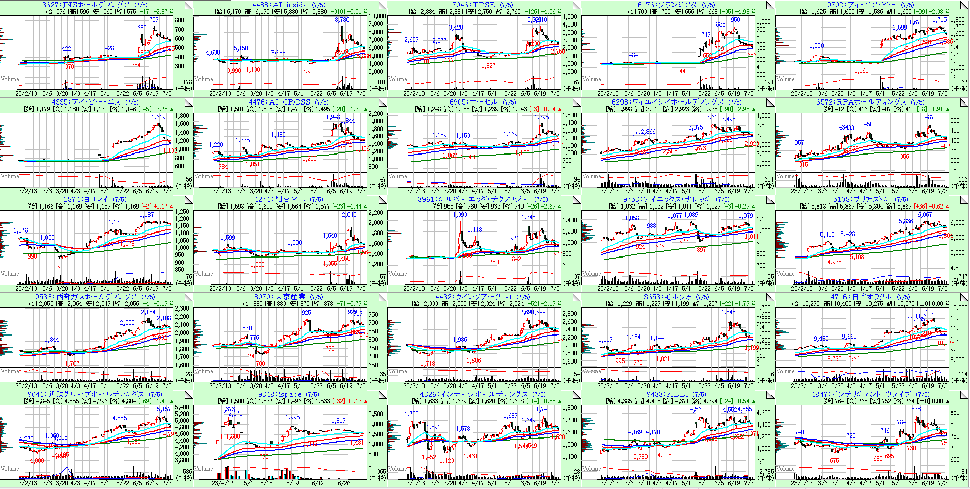 今回も26週線の傾きが大きい順に左上からソートしています。