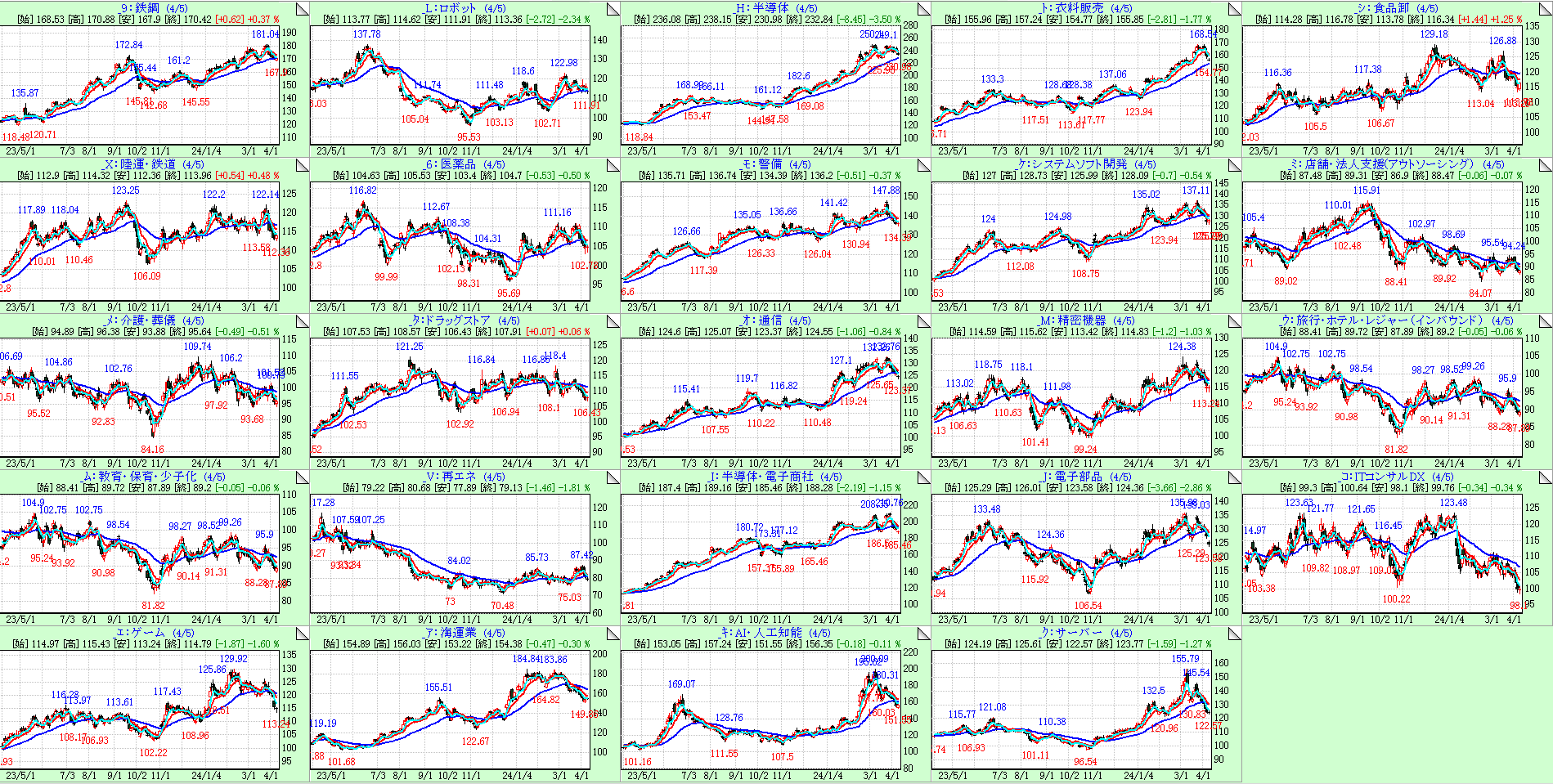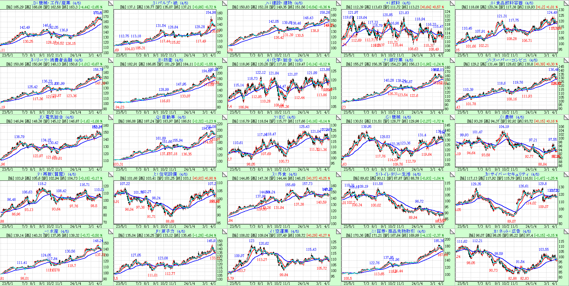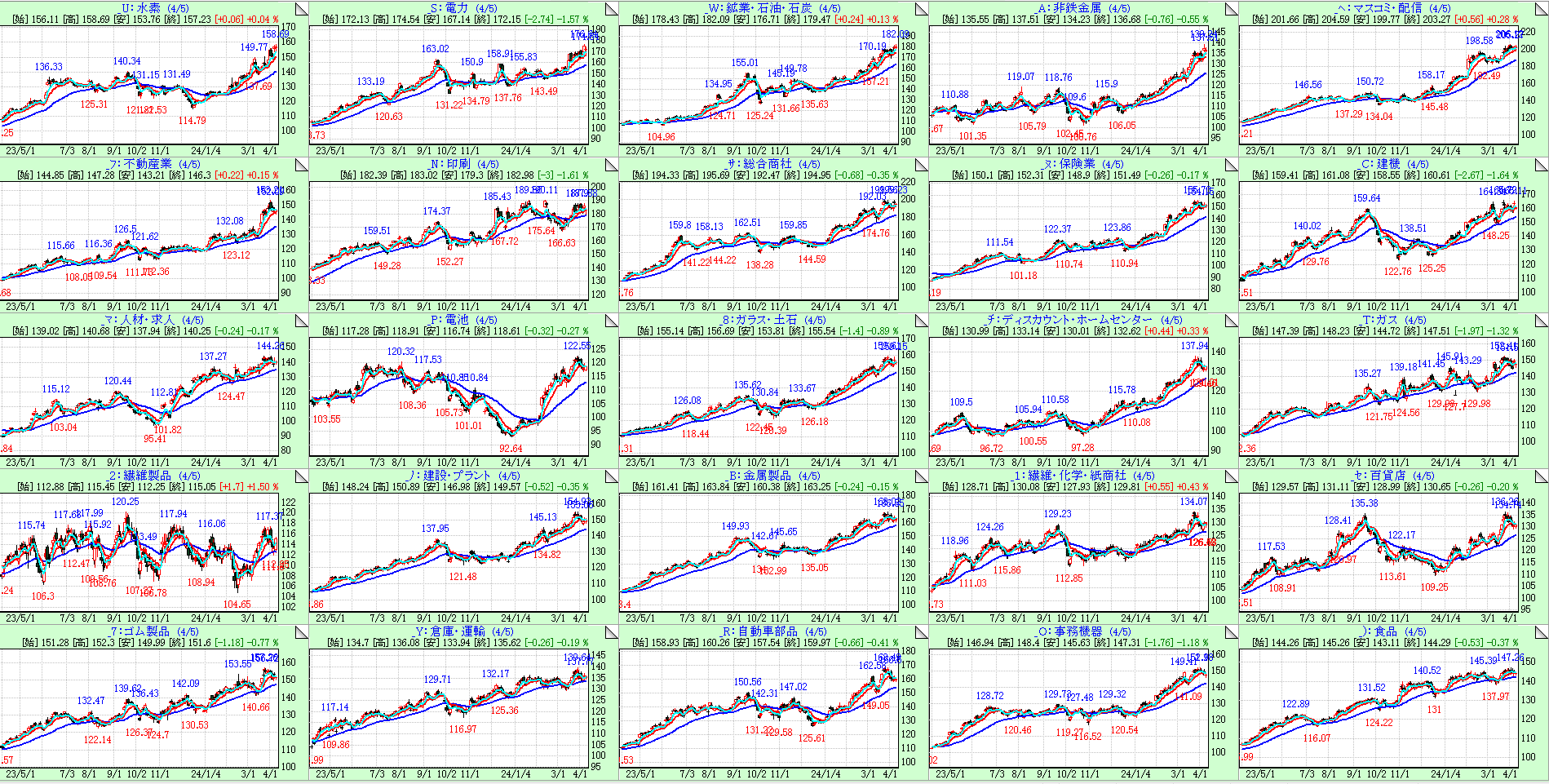 変化の感度を高めるために左上から25日移動平均線の傾き順にソートしています。