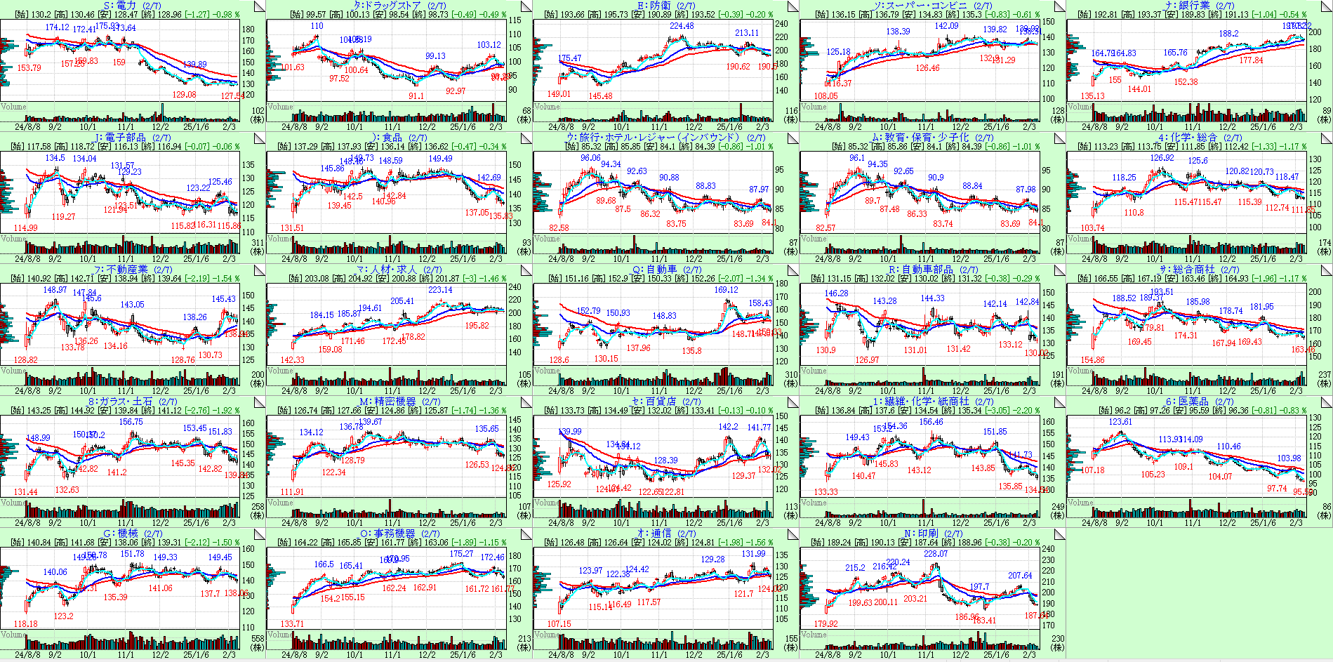 東証33業種よりも更に細分化したセクター別の指数チャートです。